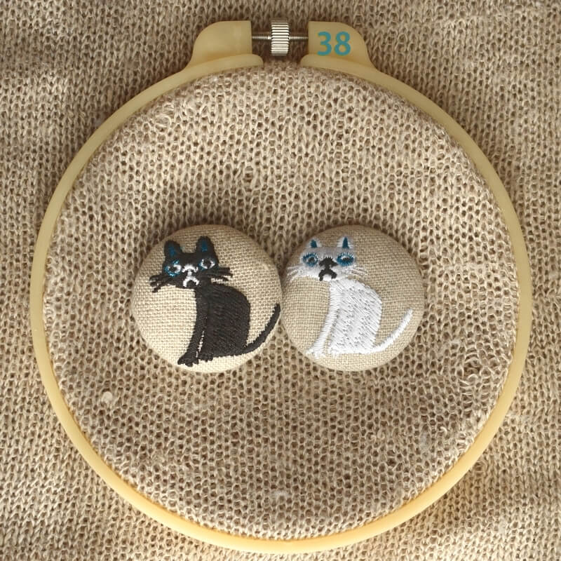 『へのじ猫』刺繍のくるみボタンは直径38mm