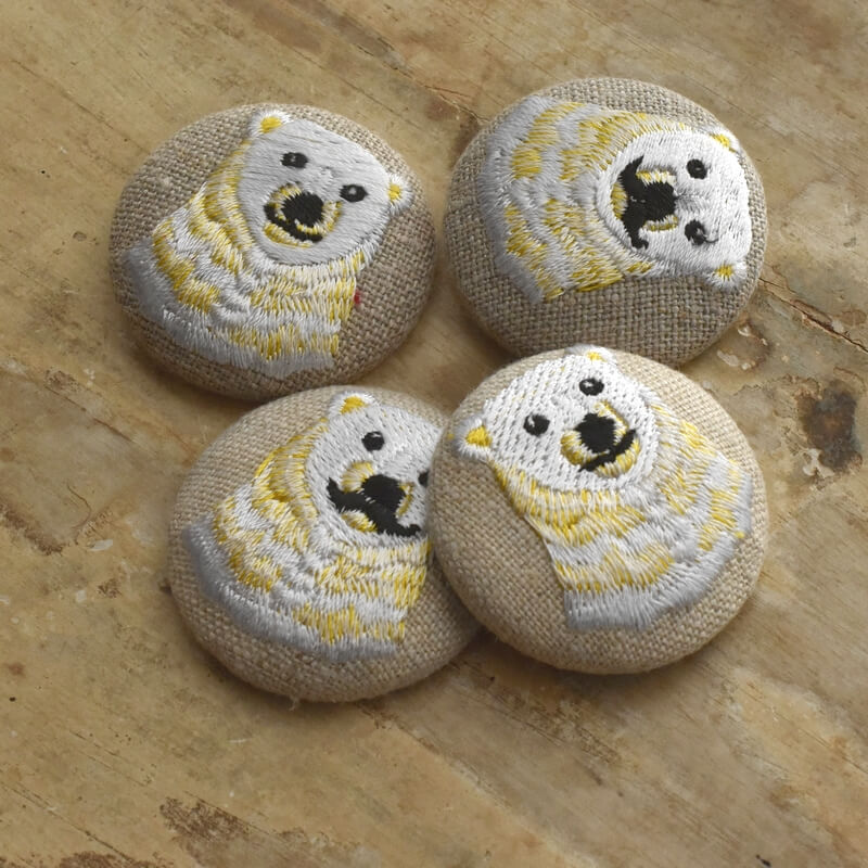 『白クマ』刺繍のくるみボタンは直径38mm