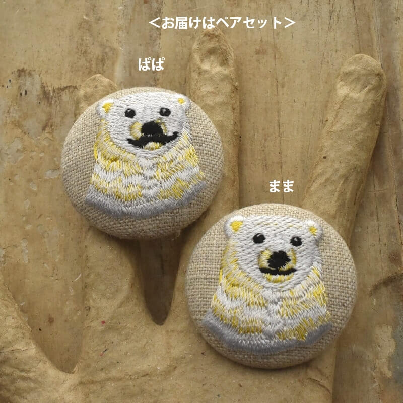 白熊パパとママのペアセット[イエローの毛並み白熊_polar bear]刺繍ボタンのアクセサリー