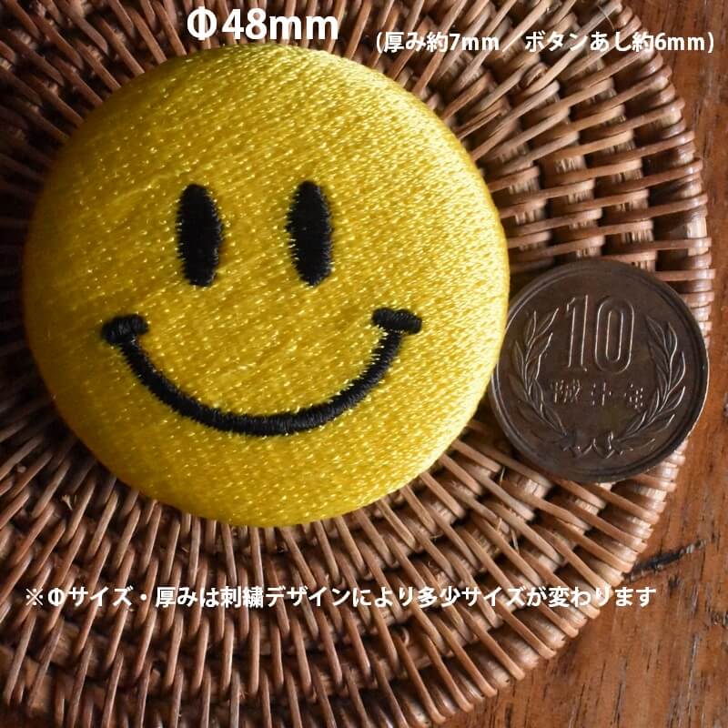 『ニコちゃんマーク』刺繍のくるみボタンは直径48mm