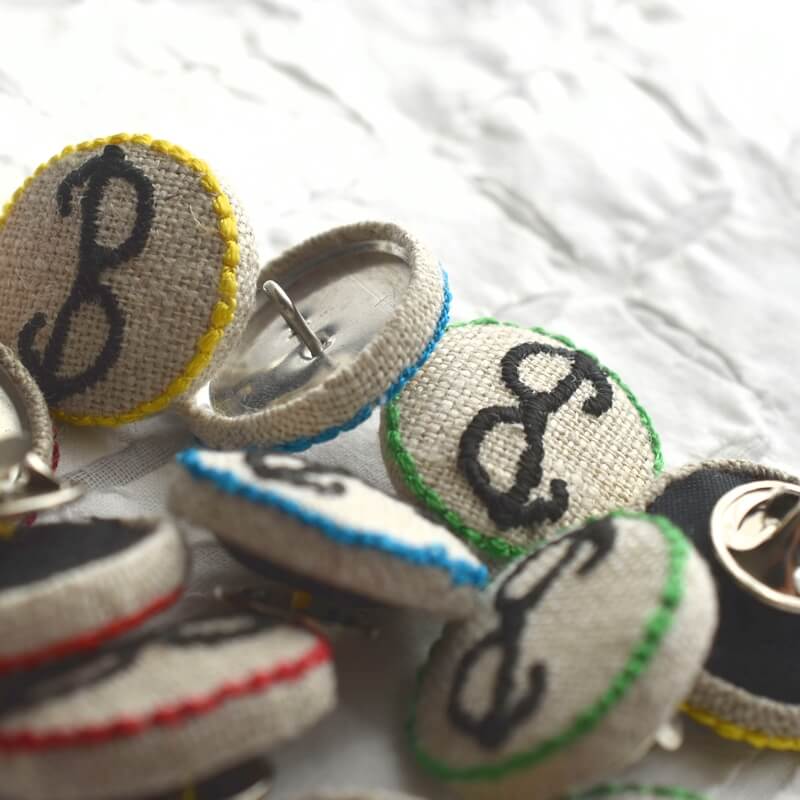 ステッチの色で刺繍のくるみボタンをお届け致します