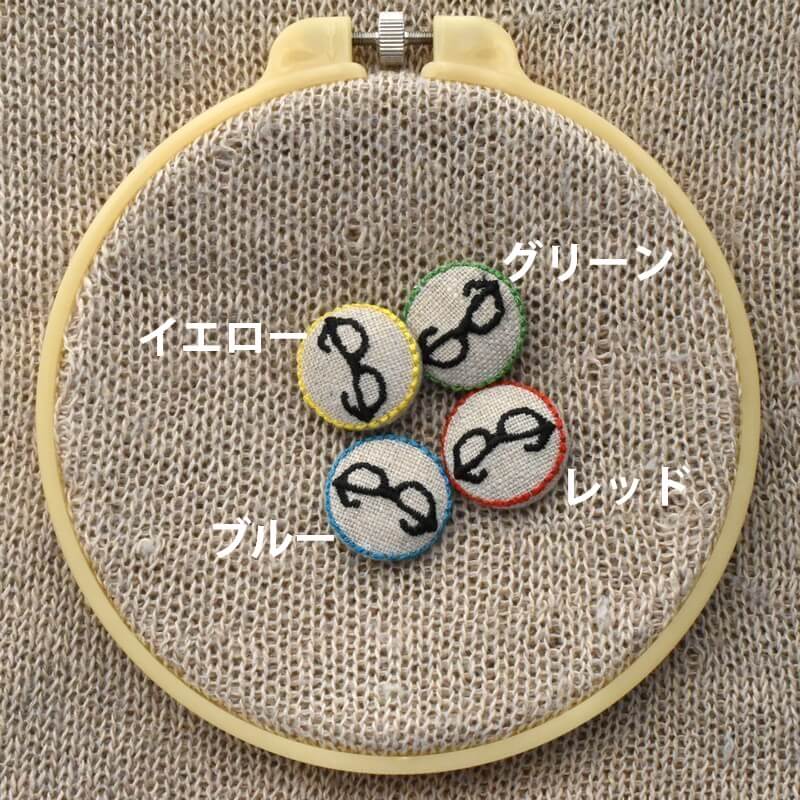 『黒ぶちメガネ』刺繍のくるみボタンは直径22mm