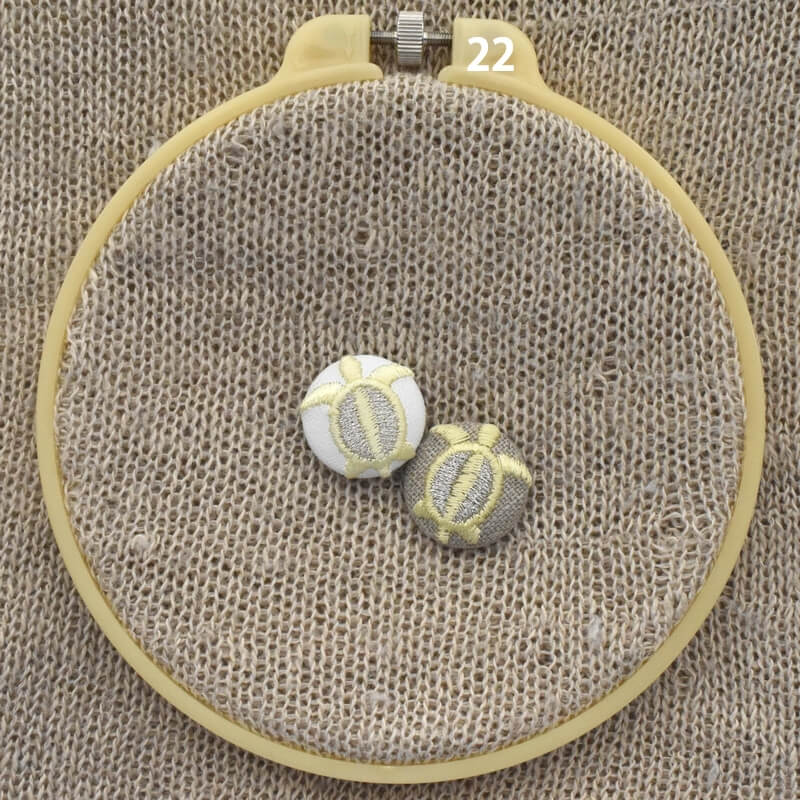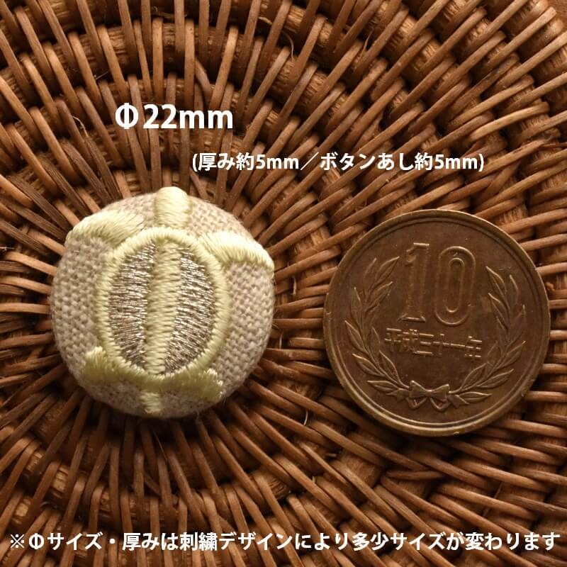 『ホヌ』刺繍のくるみボタンは直径22mm