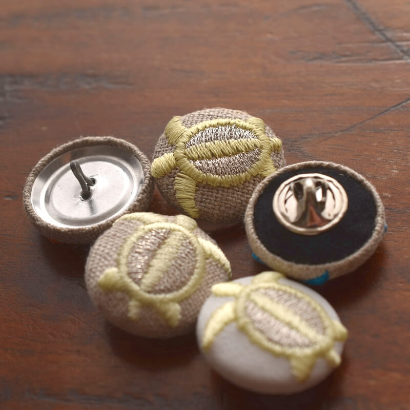 海亀・ホヌの刺繍ボタン_クラッチピン