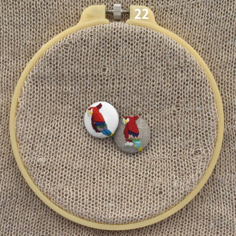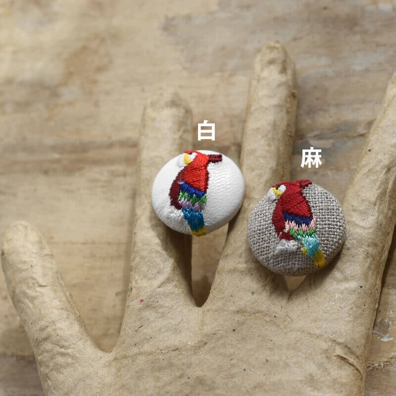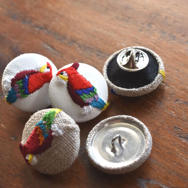 『オウム』刺繍のくるみボタンは直径22mm