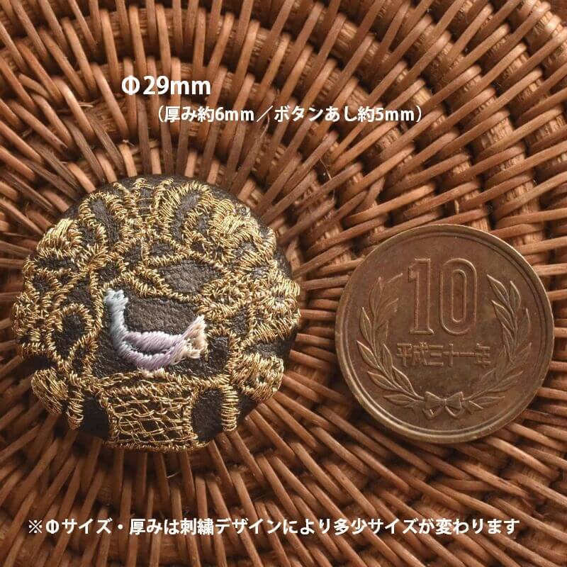 『金の鳥カゴ』刺繍のくるみボタンは直径29mm