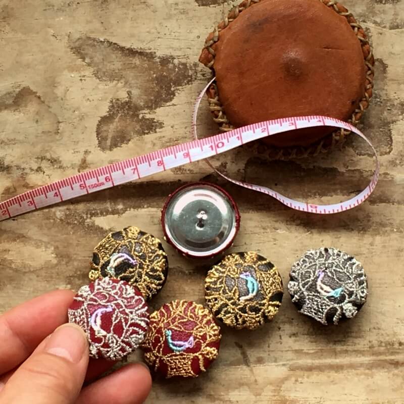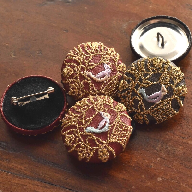 刺繍のくるみボタン・ピン加工