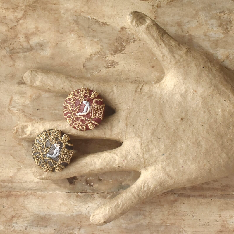 ≪ミミ刺繍のくるみボタンアクセサリー≫