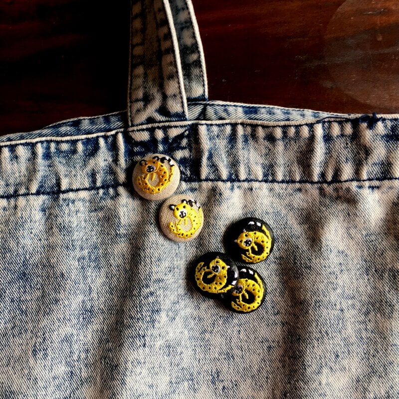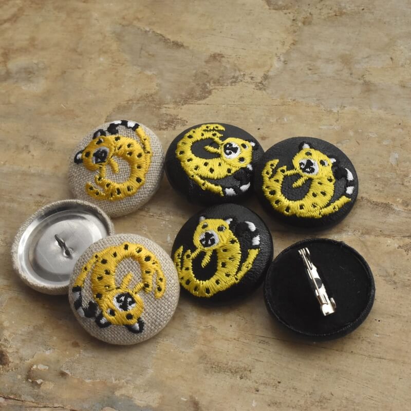 あまり怖くない?チーターの刺繍ボタン_ブローチピン