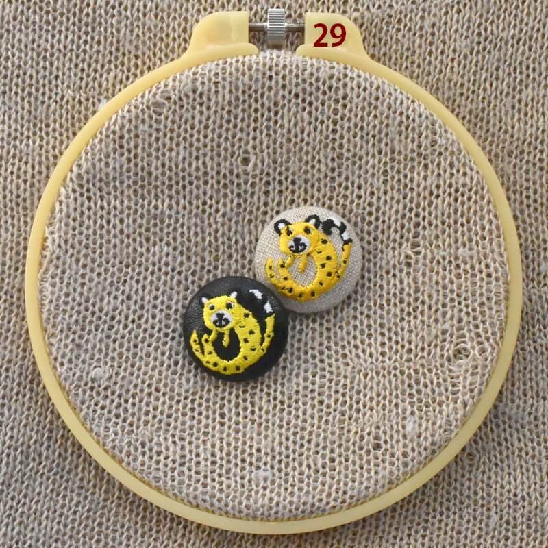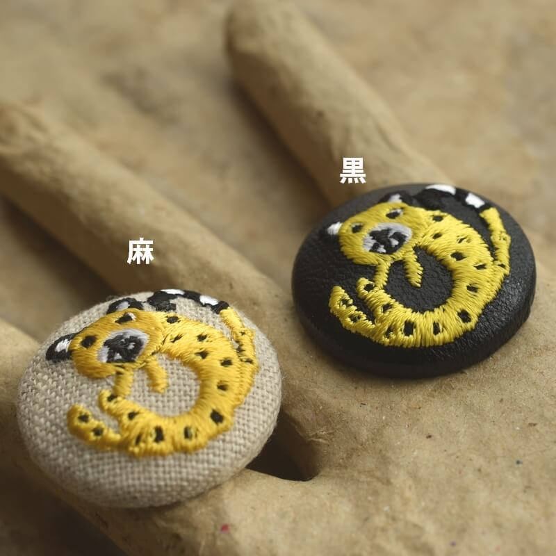 『チーター』刺繍のくるみボタンは直径29mm