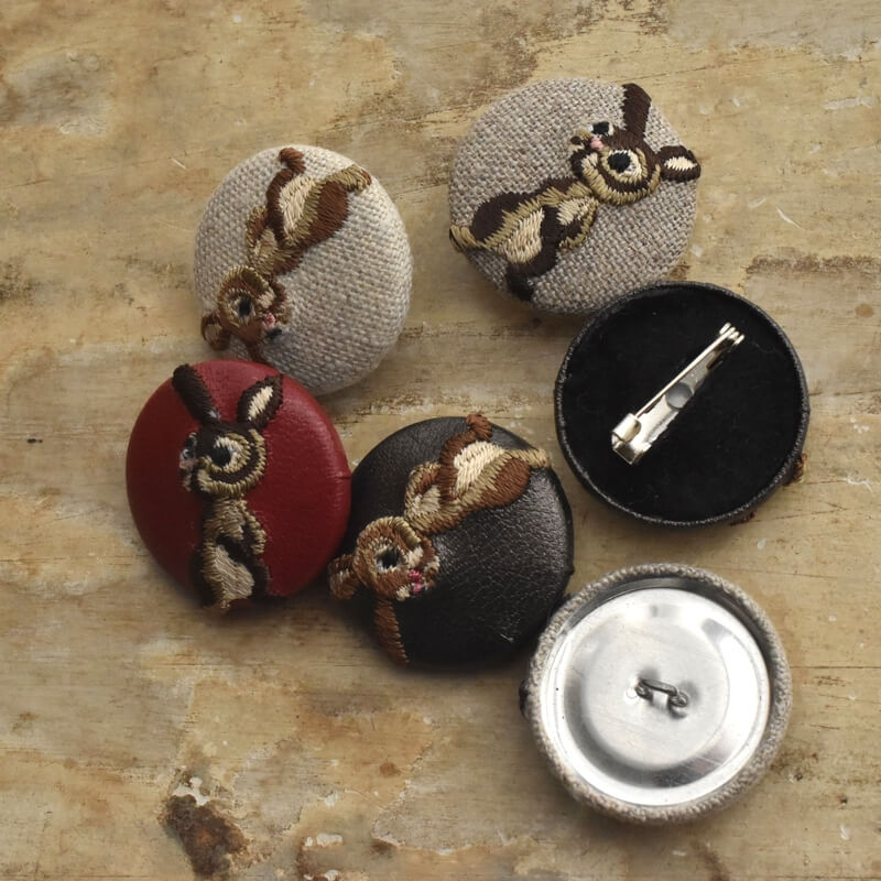 『うさぎ』刺繍のくるみボタンは直径29mm