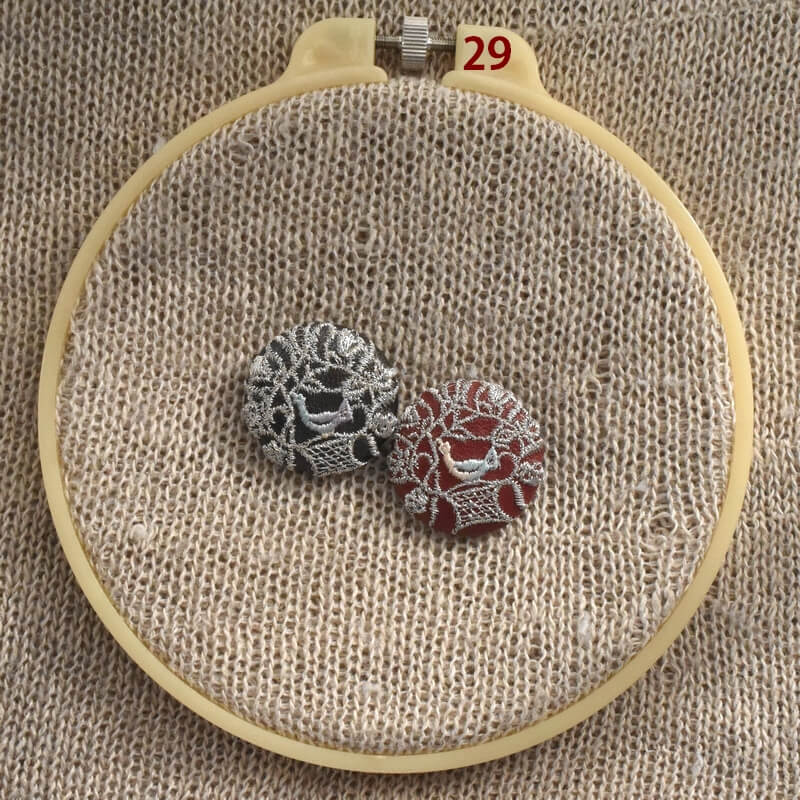 『銀の鳥カゴ』刺繍のくるみボタンは直径29mm