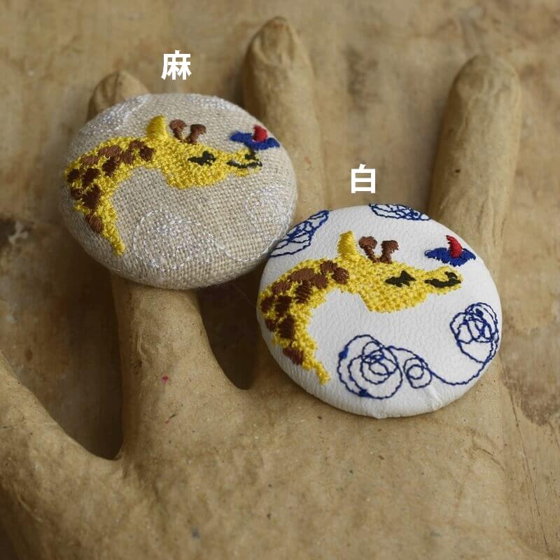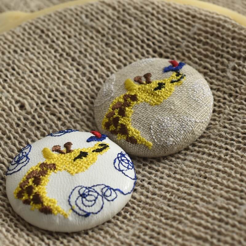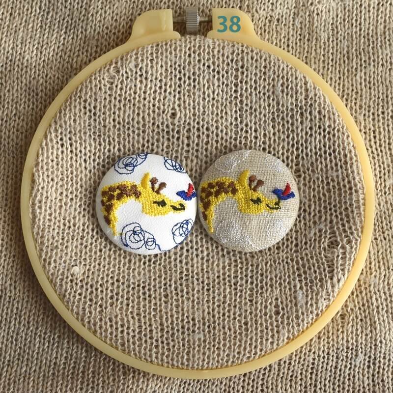 『キリン』刺繍のくるみボタンは直径38mm