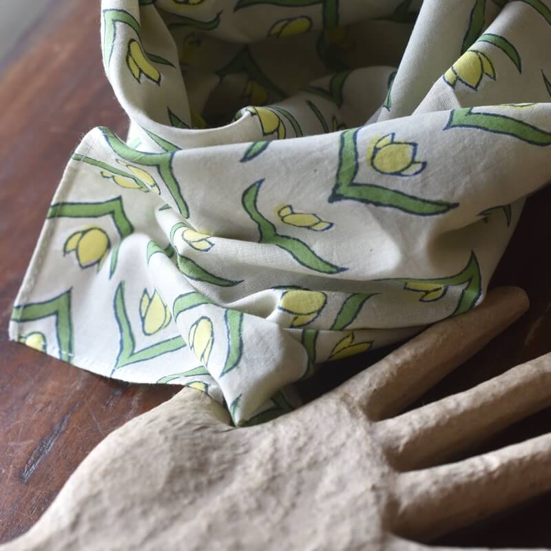 ハンドブロックプリントのコットンハンカチ_バンダナへ