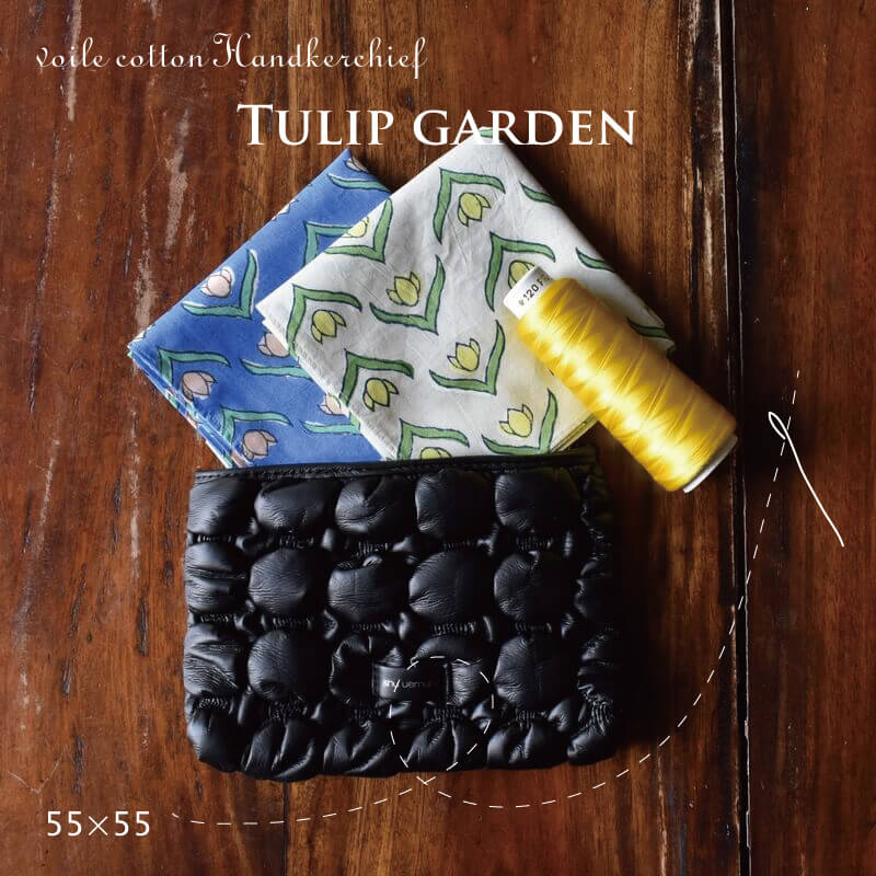 <ボイルハンカチ[チューリップ畑のプリントハンカチ]カラー展開>