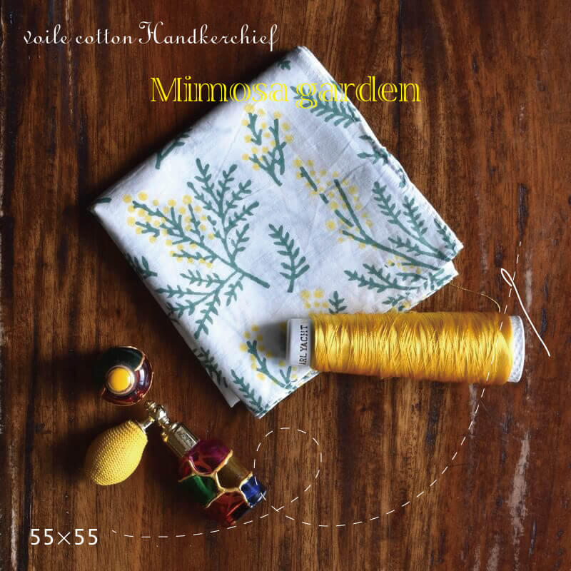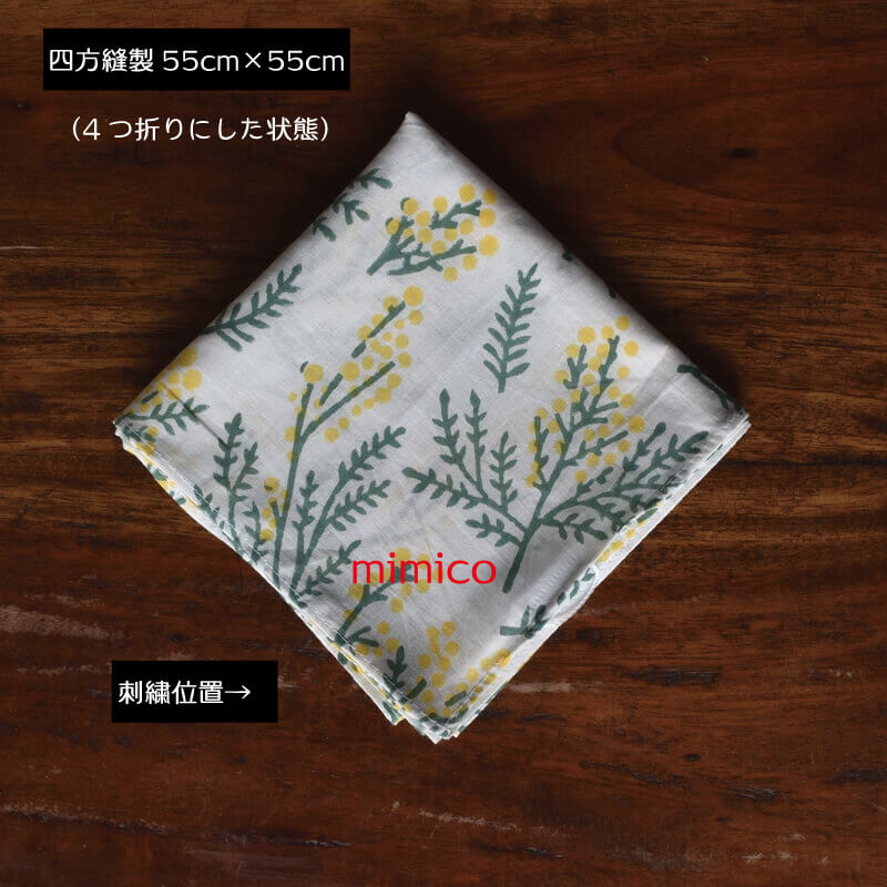 綿プリントハンカチ・バンダナ[ミモザの園]ネーム刺繍名入れギフトの商品データ
