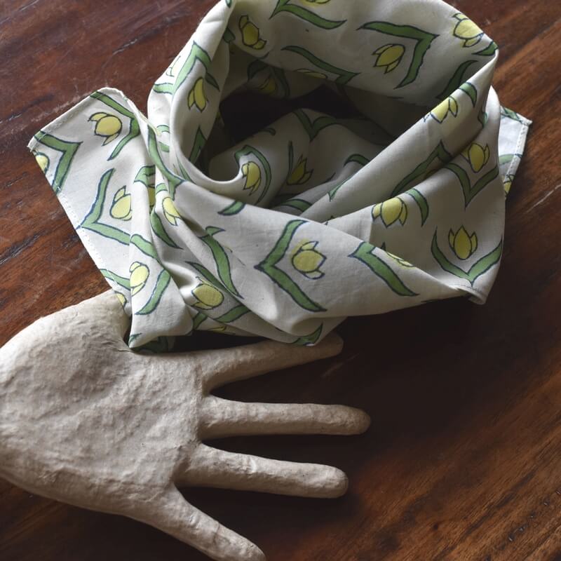 ハンドブロックプリントのコットンハンカチ_バンダナへ