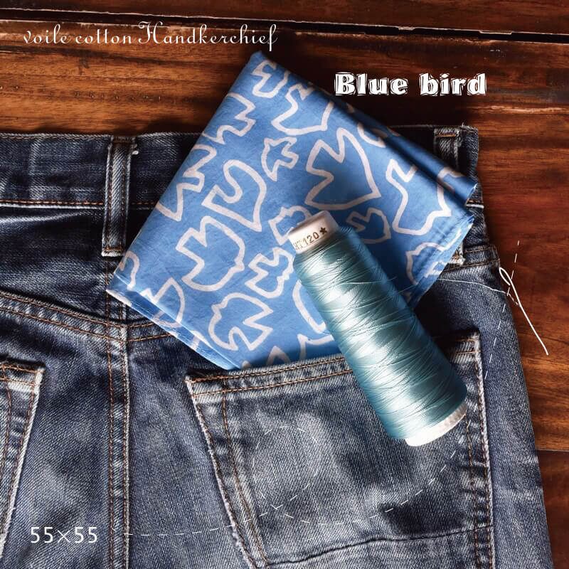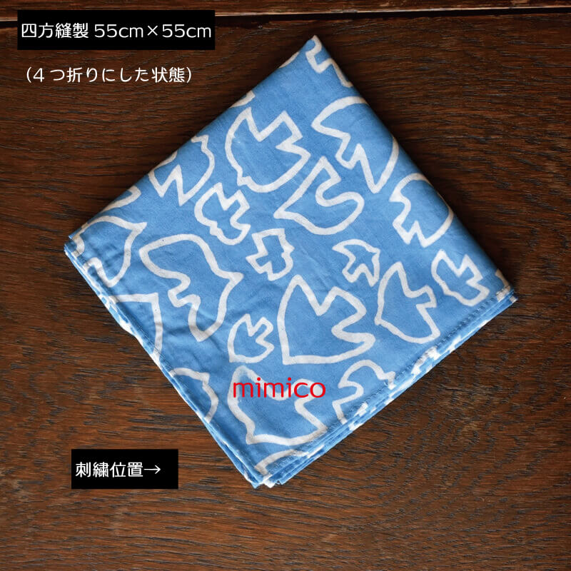 綿プリントハンカチ・バンダナ[羽ばたく鳥]ネーム刺繍名入れギフト