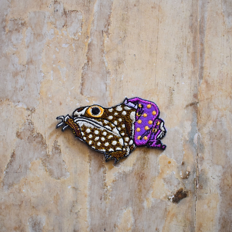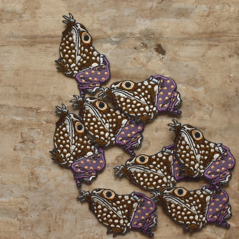 [がま蛙]ガマ侍の刺繍_別布片(ワッペン)