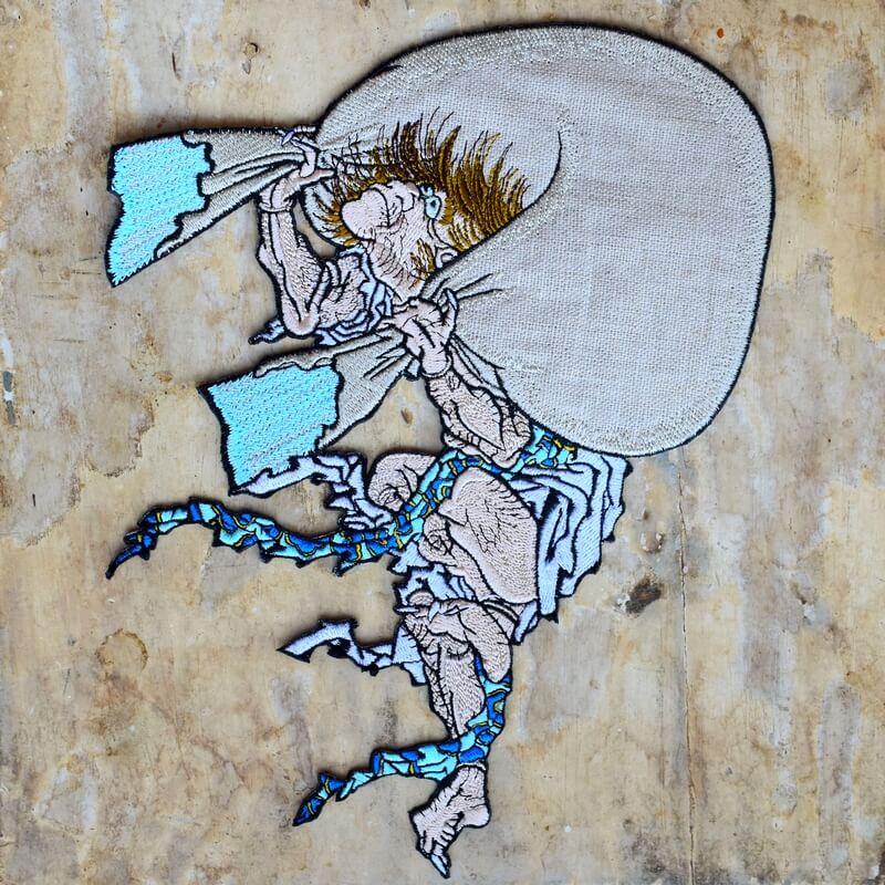 葛飾北斎画[風神]の刺繍_別布片(ワッペン)