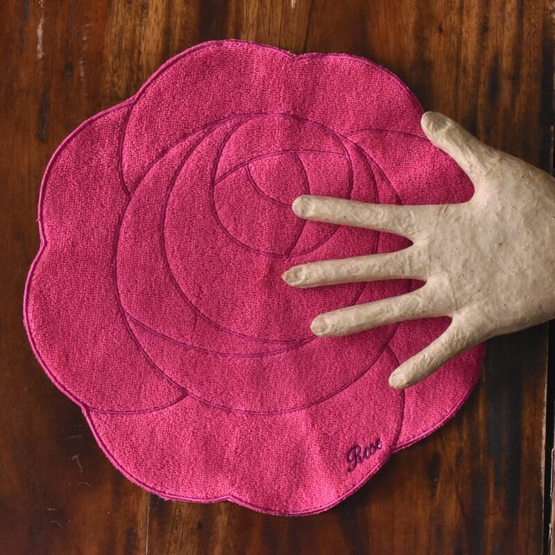 お花を円形の形にくり抜いた円形に仕上げたハンカチです